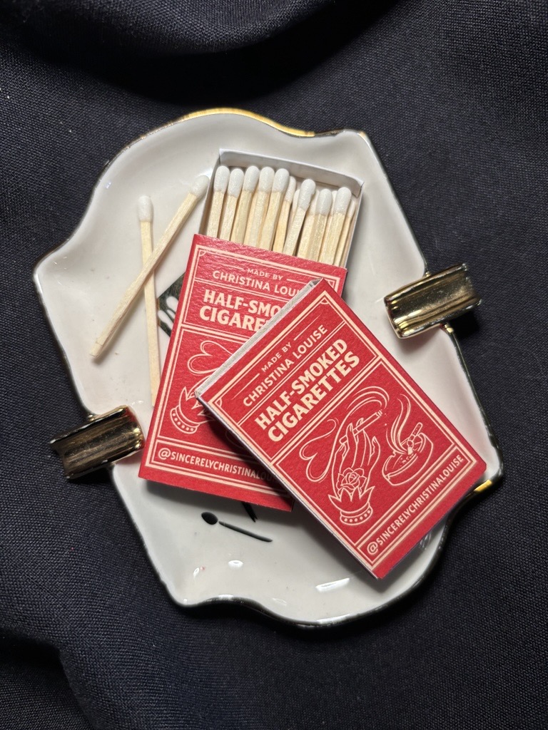 First, I got merch! My very first merch! I had a friend of mine who’s a local tattoo artist sketch up something for a mathbox design and it’s utterly perfect. I just got the shipment in, and they are perfect. Plus, new stickers! A friend of mine was kind enough to print some for my first show back in March, but this time around I wanted to have them professionally done. So, stickers and matchboxes will be for sale at my show on the 19th, or simply send me an email or dm on insta/tiktok if you’d like to purchase one!