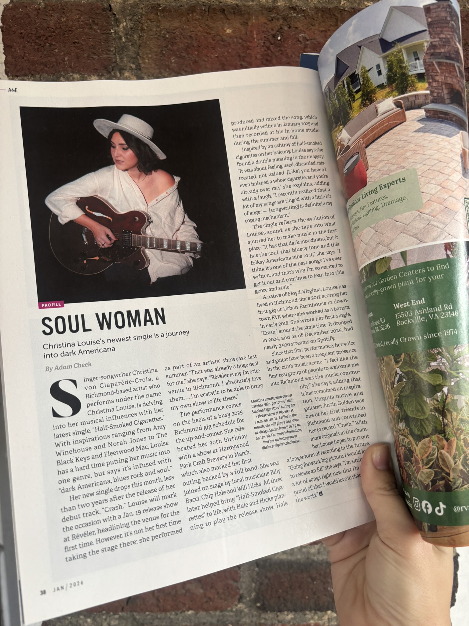 Second, a good friend of mine, Adam Cheek, pitched the single release to Richmond Magazine back in November. We did a formal interview (well, as formal as it gets with a friend who’s a journalist & podcaster), and this month, I am featured in the January issue of the magazine.